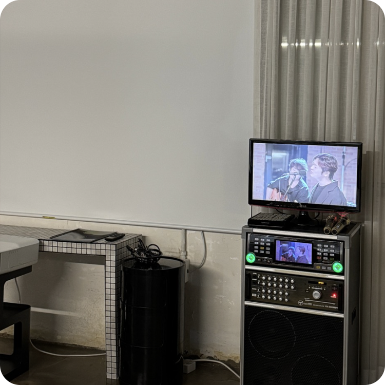 ![]() | 기업 워크샵 & 팀 미팅 집중 가능한 구조와 차분한 톤 | ![]() | 브랜드 런칭 & 상영회 조명·배경 연출에 강점 있는 로우 무드 |