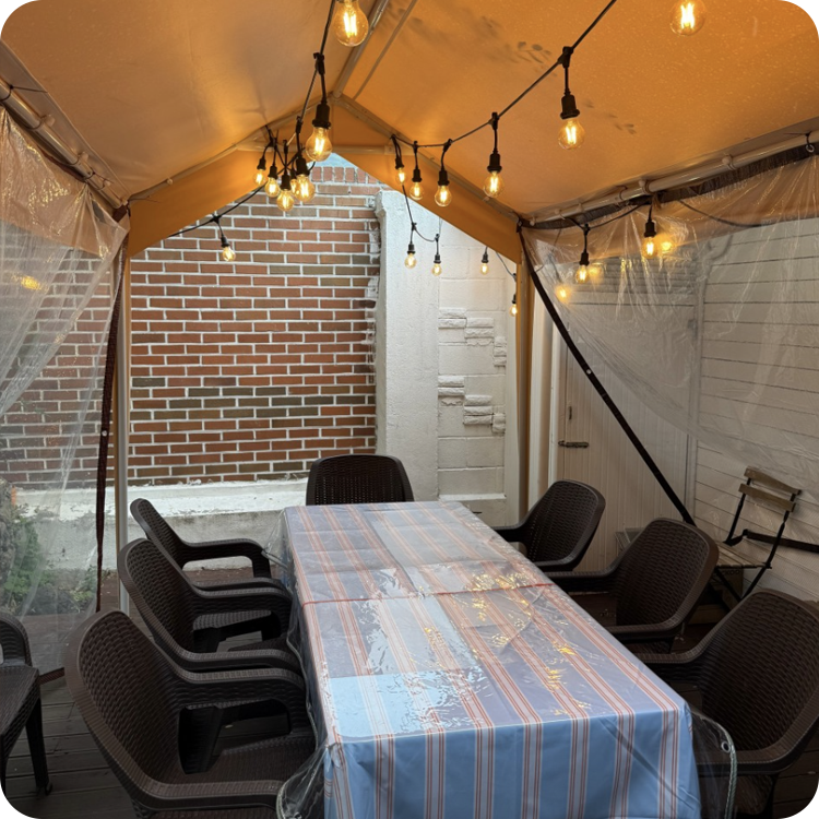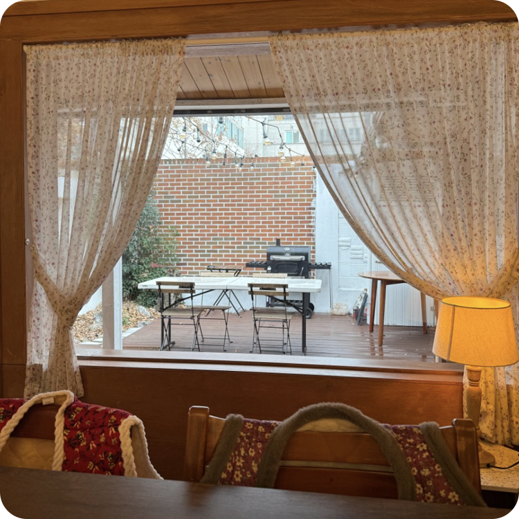 ![]() | 생일파티 & 집들이 감성 조명으로 특별한 분위기 연출 | ![]() | 가족모임 아이부터 어른까지 편안한 하우스형 마당 |
