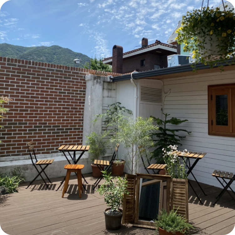 ![]() | 감성 촬영 브릭월 + 조명 + 나무 데크가 사진 배경으로 최적 |