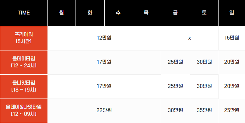 * 8명 초과 시 1명당 1만원 추가