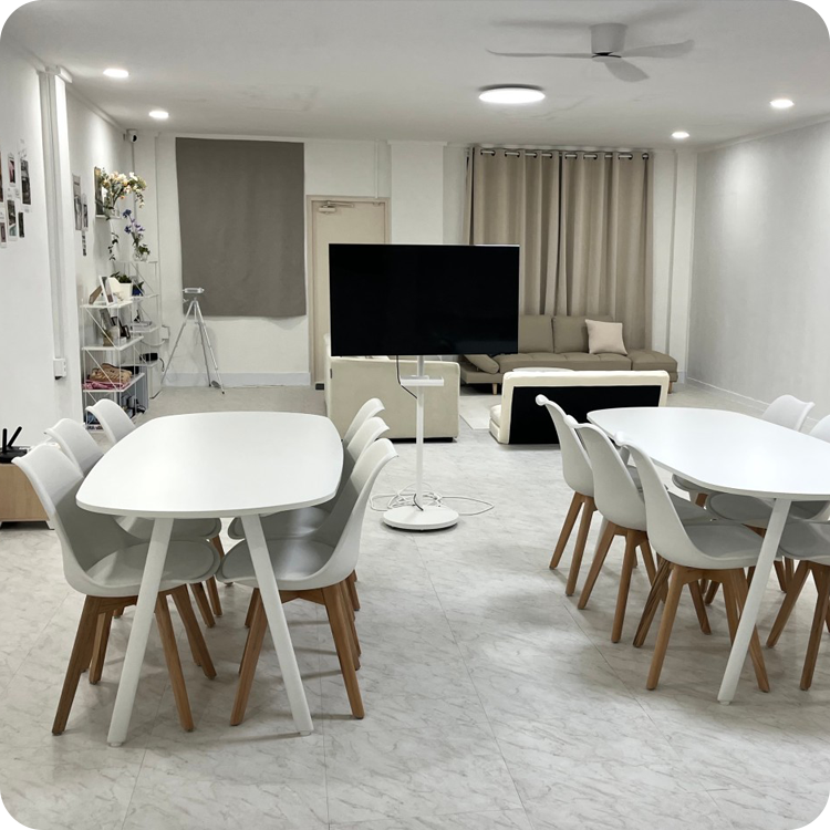 ![]() | 스터디 & 그룹 모임 조용한 구조와 화이트톤 집중 환경 | ![]() | 소규모 워크샵 & 회의 테이블 배치와 TV 스크린 활용 |