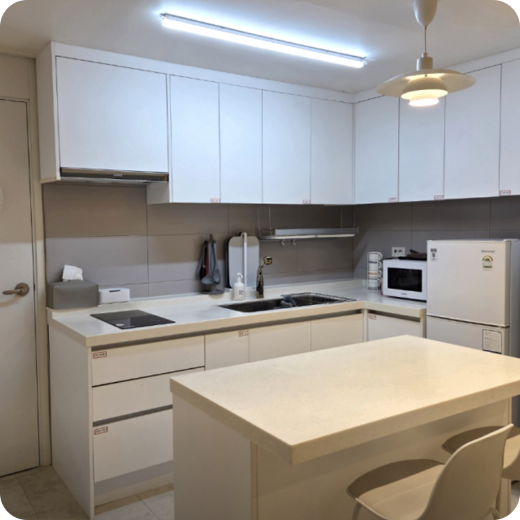 ![]() 냉장고, 인덕션2구, 전자레인지, 와인잔, 주방집기 구비 |