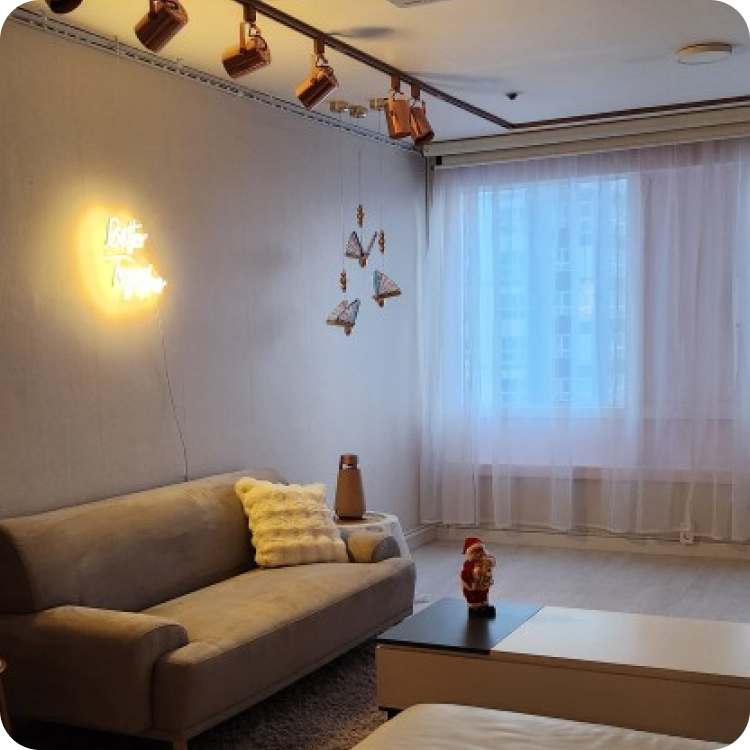 | 크리스마스 파티 대형 스크린+데코로 특별한 분위기 | ![]() | 커플데이트 조용하고 아늑한 홈라운지 |