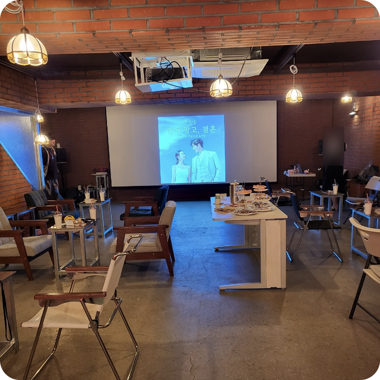 | 원하는 날짜와 시간, 지금 바로 예약하세요. 브릭 감성 & 블루 라이트 라운지 홀 공간이 기다리고 있습니다. |