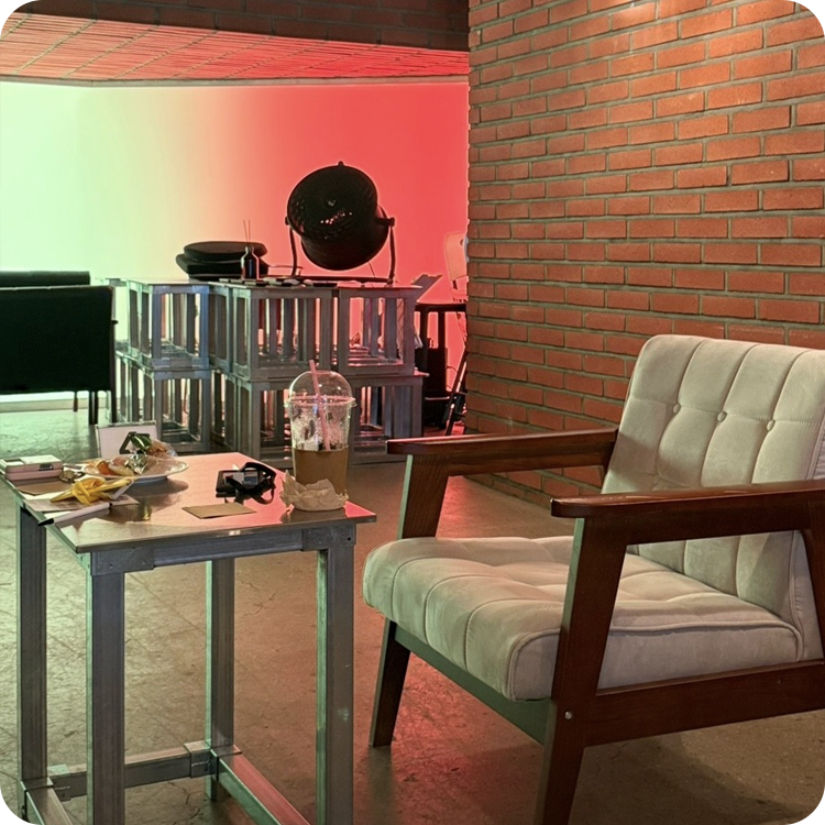 ![]() | 토크쇼 & 소규모 공연 전면 라이트 존 활용 | ![]() | 파티 & 네트워킹 라운지 무드의 캐주얼한 분위기 |