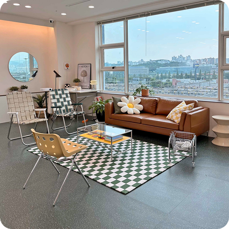 낮에는 채광이 가득한 라운지로, 밤에는 은은한 조명 무드로 변신합니다.