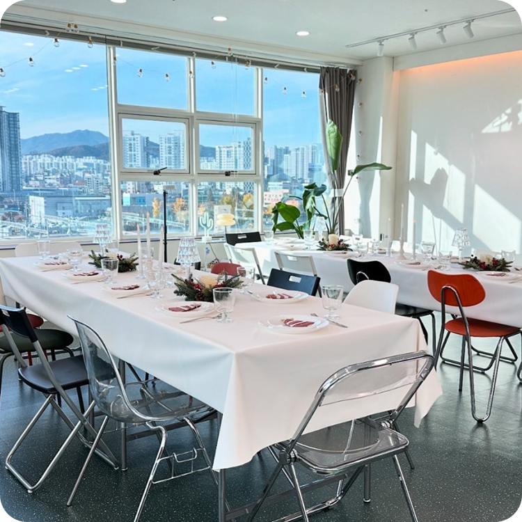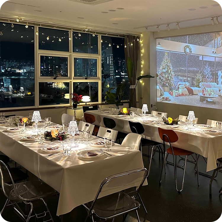 브라이덜샤워, 생일파티, 기업 워크숍 등 다양한 목적의 모임을 프라이빗하면서도 스타일리시하게 연출할 수 있는 공간입니다.