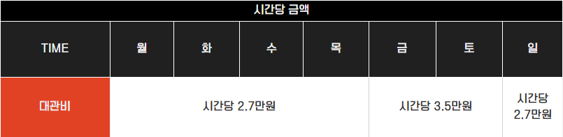 * 최소 이용시간 2시간 / 6명 초과 시 인당 5,000원 추가됩니다.