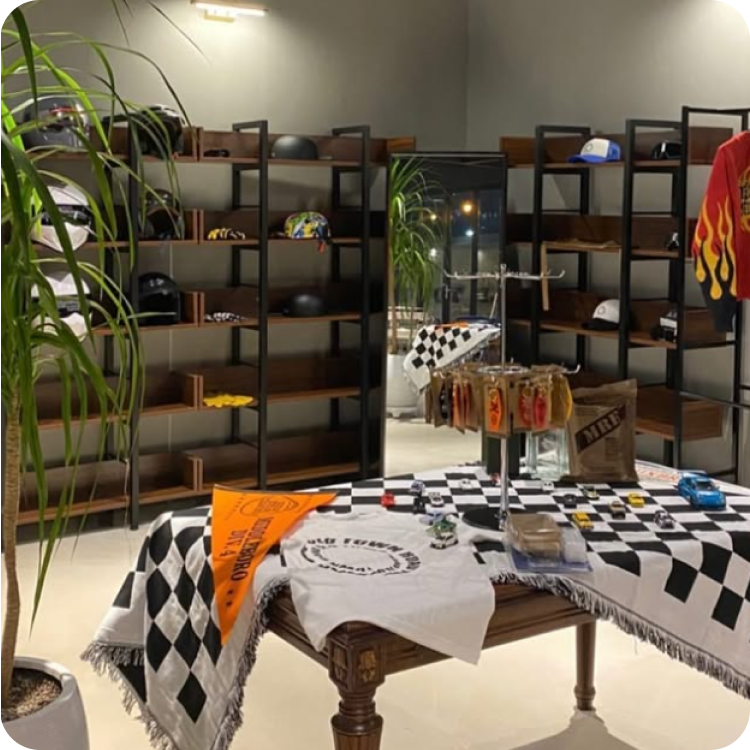 실내에 전시된 오브제와 바이크 연출이 공간 자체를 콘텐츠로 만들어줍니다.