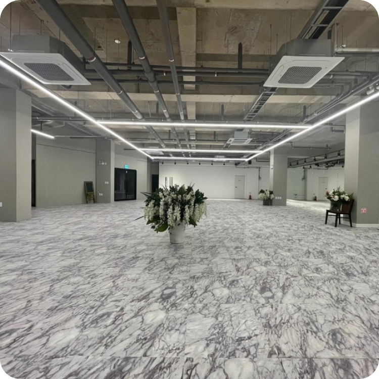 ![]() | 대형 네트워킹 & 파티 자유로운 동선 확보가 가능한 넓은 평수와 고급스러운 분위기 | ![]() | 화보 & 룩북 촬영 라인 조명과 대리석 바닥이 만드는 감각적인 스튜디오 무드 | |||