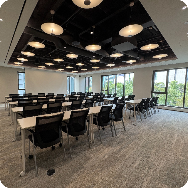 대형 스크린과 전문적인 강의형 좌석 배치가 완비된 컨퍼런스 홀부터, 고급스러운 대리석 바닥과 세련된 라인 조명이 돋보이는 오픈 라운지까지 갖추고 있습니다.