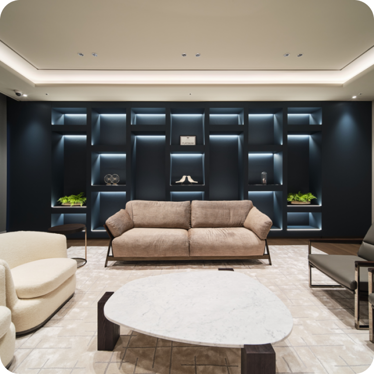 ![]() | 대형 네트워킹 & 비즈니스 파티 오픈 플랜 구조로 자유로운 소통과 동선 확보 | ![]() | 브랜드 런칭 & 쇼케이스 대리석 바닥과 감각적인 조명이 돋보이는 전시형 연출 | |||