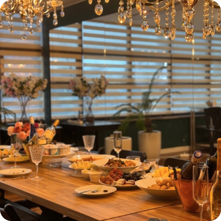 은은한 간접 조명과 대형 거울 인테리어가 공간의 깊이감을 더해주어, 연말 모임이나 기업 행사, 대규모 가족 연찬회 등 격식 있는 자리에 최고의 선택이 될 공간입니다.