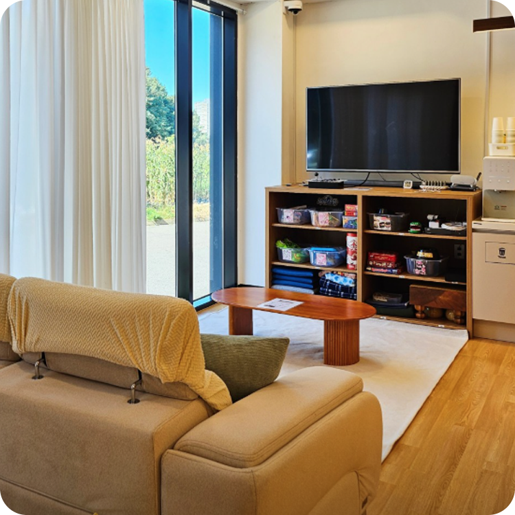 ![]() | 보드게임, 바둑, 장기, 화투, 원카드, 넷플릭스, 유투브, 당구대, 오락실게임기 구비 | ![]() | 12인 식탁 , 전자레인지, 얼음정수기, 냉장고, 식기, 일회용컵&젓가락 등 주방시설 구비 |