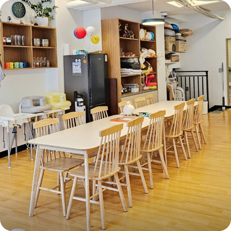 ![]() | 키즈 생일파티 & 풀파티 사계절 미온수 이용이 가능한 단독 실내 풀장 | ![]() | 공동 육아 & 조리 모임 넓은 다이닝 공간과 주방 시설로 홈파티 가능 |