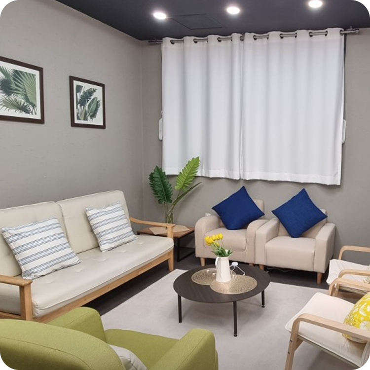 화이트 커튼 사이로 비치는 차분한 분위기 덕분에 집중도 있는 회의는 물론, 깔끔한 무드의 프라이빗 소모임까지 다양하게 활용할 수 있는 다목적 공간입니다.