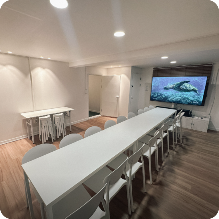 ![]() | 친목 모임 & 홈파티 깔끔한 화이트 무드에서 즐기는 우리만의 프라이빗 타임 | ![]() | 기업 워크샵 & 세미나 대형 테이블과 스마트 스크린으로 효율적인 미팅 가능 |