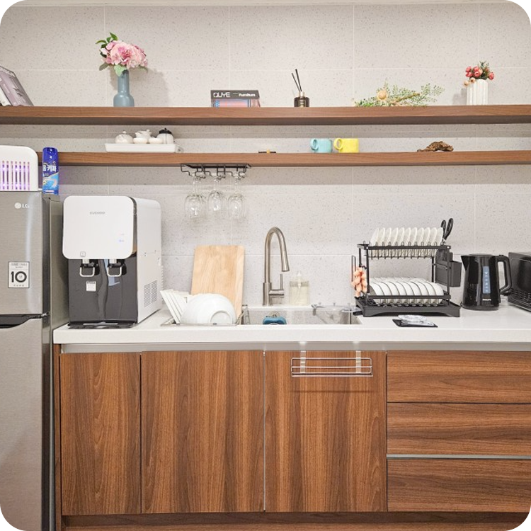 ![]() 냉장고, 전자레인지, 전기포트, 냉온 정수기 등 구비 |
