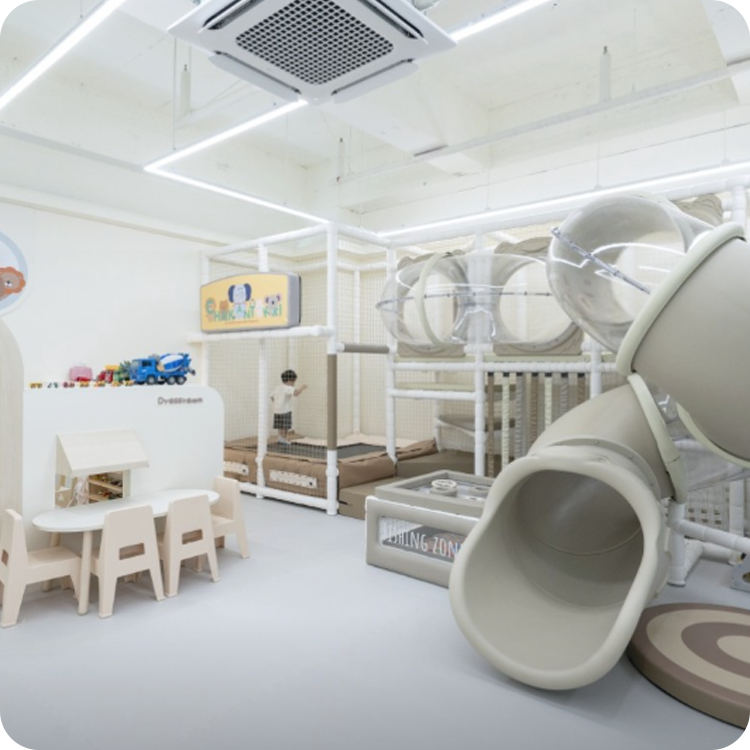 내부에는 안전하게 설계된 대형 미끄럼틀, 정글짐, 그리고 아이들의 성취감을 높여줄 실내 클라이밍 존까지 다채로운 놀이 시설이 마련되어 있습니다.