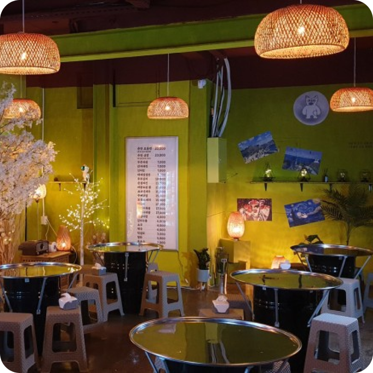 충분한 테이블 좌석과 쾌적한 내부 시설을 갖추고 있어, 소규모 모임부터 단체 대관까지 활기찬 에너지를 즐기기에 최적화된 공간입니다.