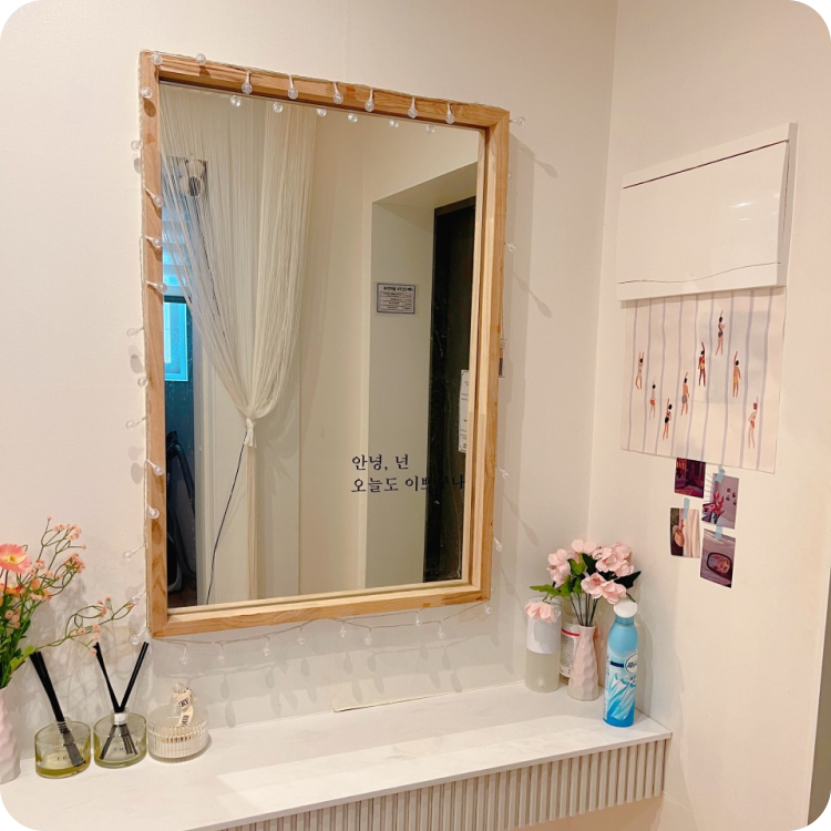 군더더기 없는 미니멀한 구성과 전신 거울 포토존까지 갖추고 있어 소중한 사람들과의 기념일이나 콘텐츠 촬영 공간으로도 손색이 없습니다.
