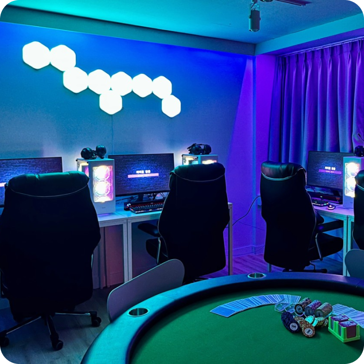 전문적인 홀덤 테이블과 고사양 PC 4대가 완비되어 있어, 친구들과의 짜릿한 게임 승부는 물론 이색적인 파티를 즐기기에 최적화된 공간입니다.