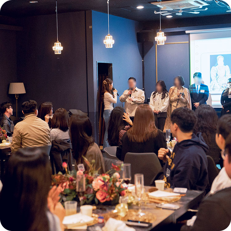 엔틱한 무드와 세련된 인테리어가 조화를 이루며, 최대 100명 수용이 가능한 테이블·의자 세팅으로 다양한 규모의 파티와 모임을 완벽하게 소화합니다.