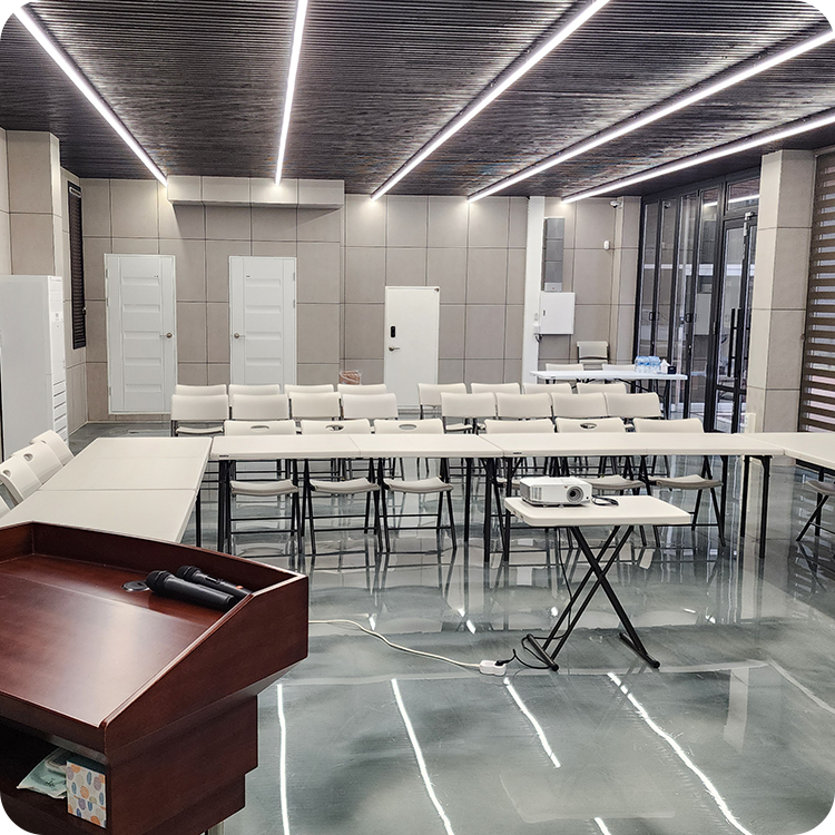 깔끔한 인테리어와 넉넉한 시설로 최대 50명까지 수용 가능한 프라이빗 공간입니다. 워크숍, 세미나, 가족행사, 기업행사 등 다양한 목적에 최적화되어 있으며, 주차 걱정 없는 무료 주차 50대 가능 + 대형차량 주차 지원으로 더욱 편리하게 이용하실 수 있습니다.