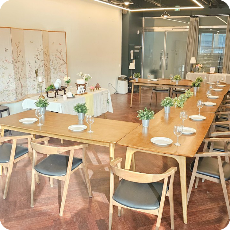 ![]() | 소규모 기념일·케이터링 파티 테이블 셋팅이 편리한 구조 | ![]() | 촬영 및 콘텐츠 제작 자연광과 우드 톤으로 따뜻한 화면 연출 |